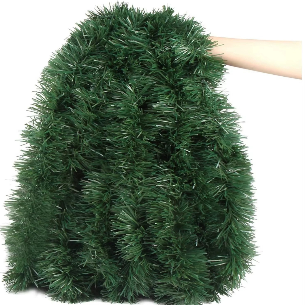 KIT 3 Festão De Natal Verde Nevado Decoração Arvore De Natal Fosco 8cm x 2m
