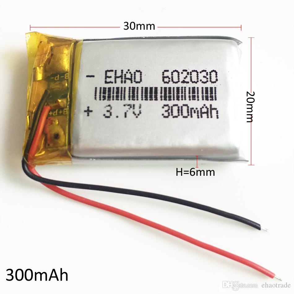 1 Unidade 602030 3,7v C/ 2 Fios 300mah 6mm X 20mm X 30m