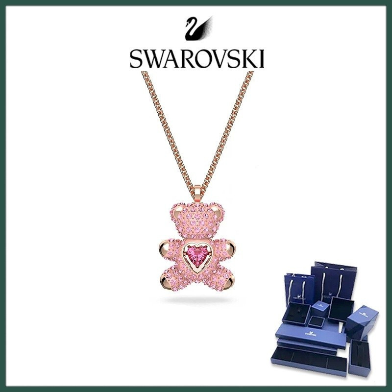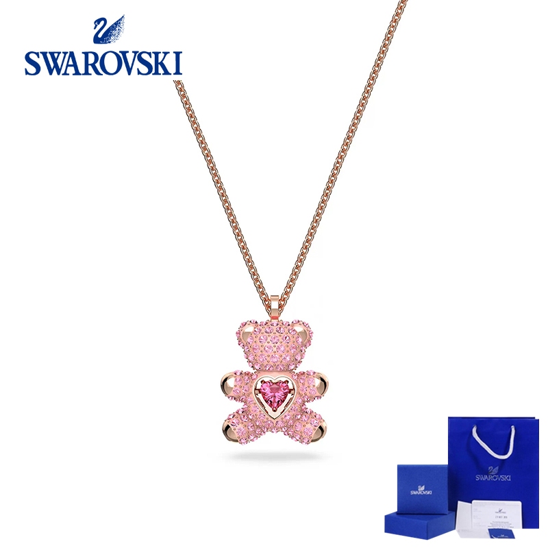 Swarovski TEDDY Feminino Clavícula Corrente Rosa TEDDY Urso Coração Urso Colar Nicho Luz Presente de Luxo