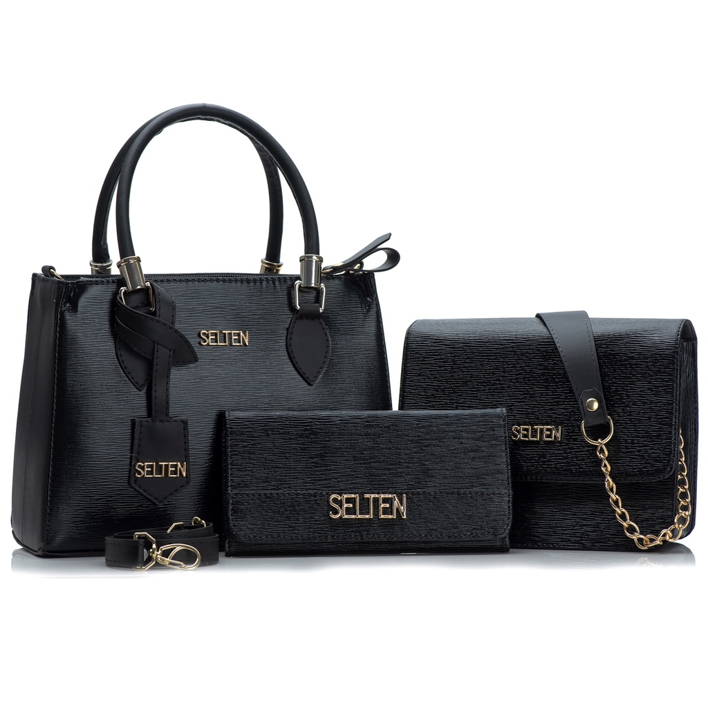 Kit Bolsa Feminina Transversal + Bolsa Bag Balada Corrente + Carteira