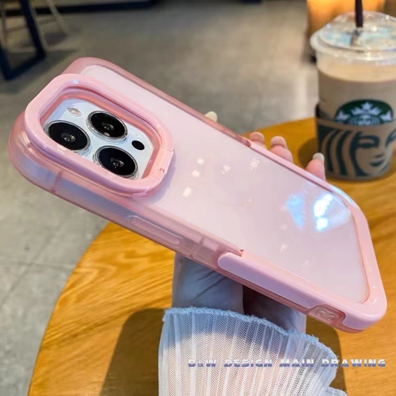 Capa De Telefone Com Suporte Invisível Duplo E Criativo Compatível iPhone 14 13 12 11 Pro MAX XR IX XS Fosca Airbag Anti-Impacto Transparente Macio