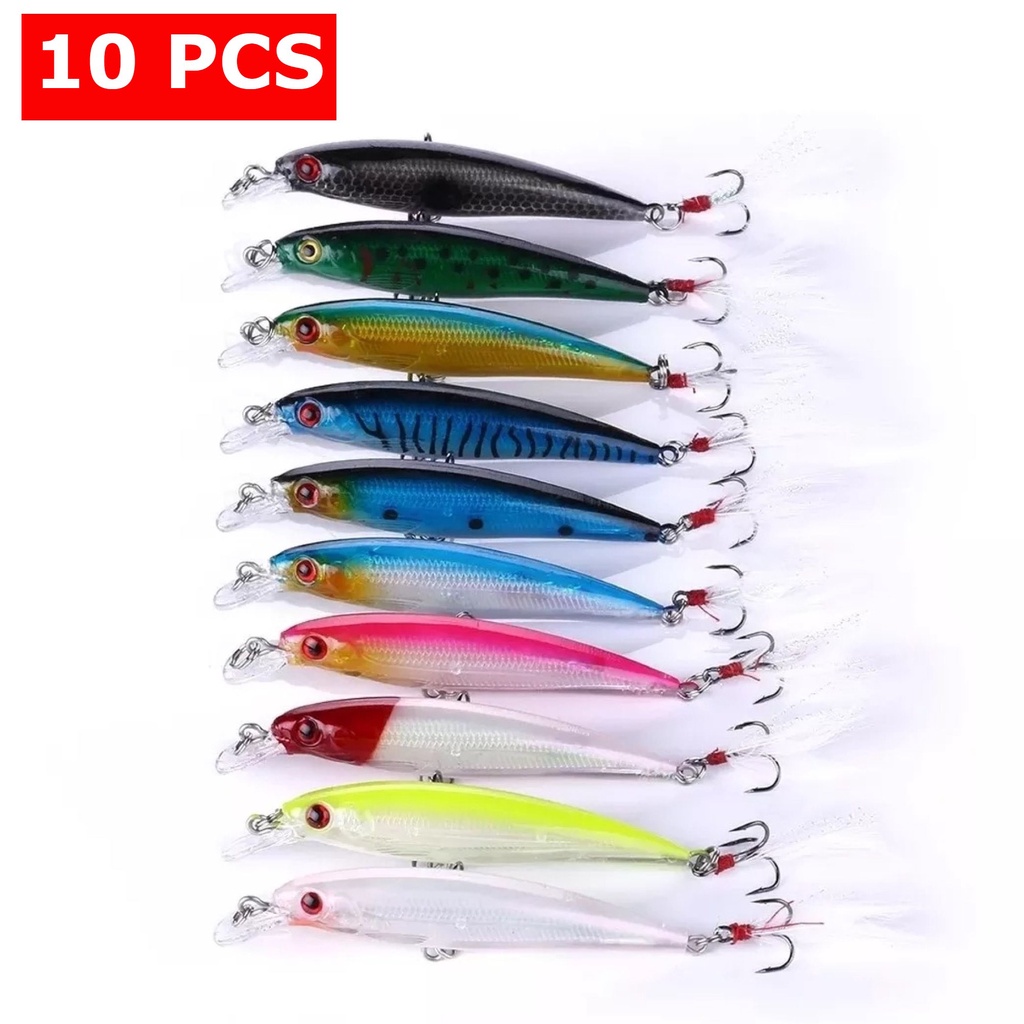 Kit 10 Iscas Artificiais Minnow 1/2 Meia Água de 10cm/9g Pesca Tucunaré Traíra Dourado Robalo Black Bass