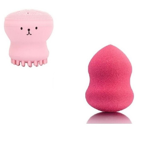 Kit Esponja de Limpeza Facial Polvo e Esponja Maquiagem - Formato Cilíndrica ou Gota