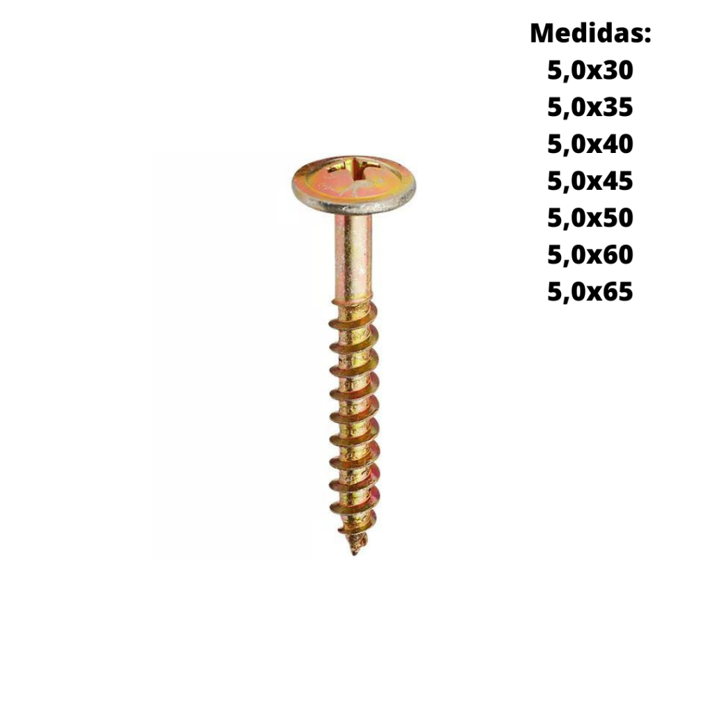 Parafuso Chipboard 5,0 mm para Madeira Cabeça Flangeada Philips 100 Peças