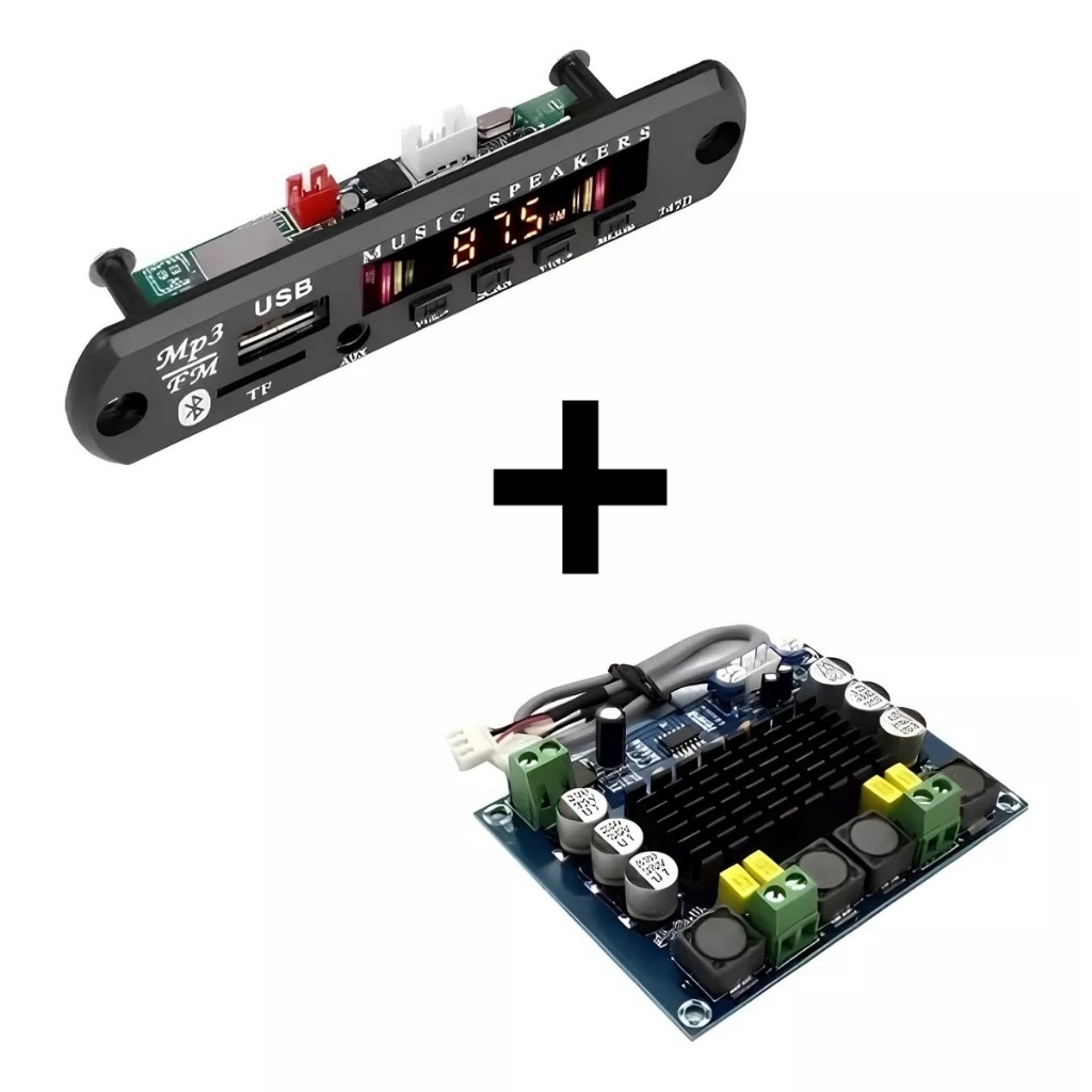 KIT Placa Amplificadora Tpa3116d2 120w + Placa decodificador de Mp3 Bluetooth