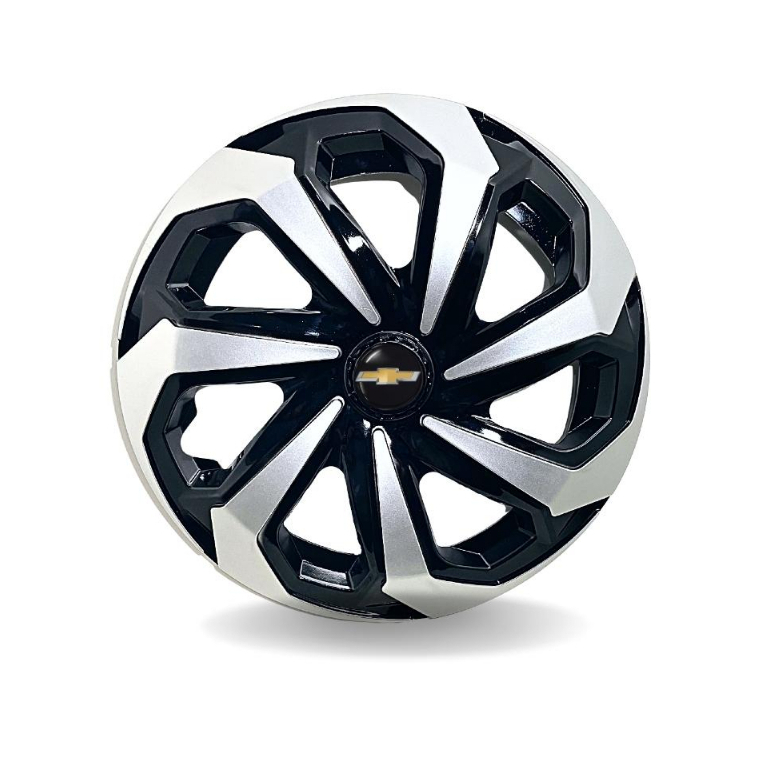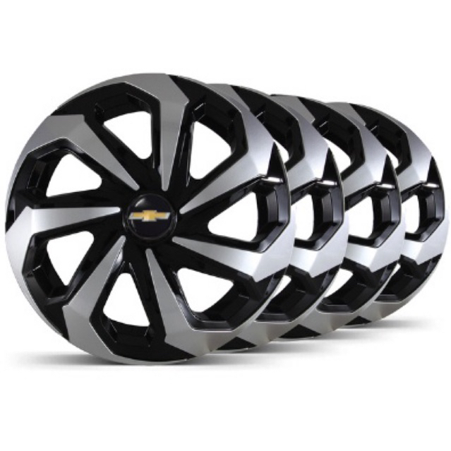 Kit 4x Calotas Spider Aro 13/14/15 Gm Onix Prisma Celta Cobalt Corsa Agile + Emblemas Resinados