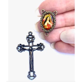 10 Crucifixos para Terços + Entremeios Resinados com foto de Santos - Kit para Terços Nossa Senhora Aparecida - Sagrada Familia - Padrio Pio - Santa Luzia - Nossa Senhora das Dores