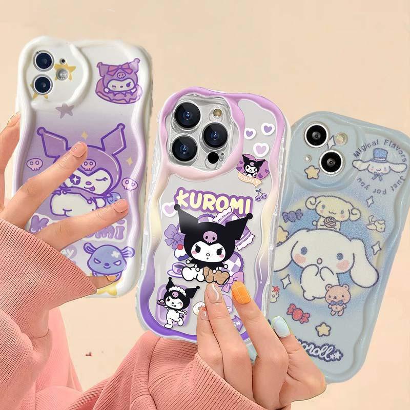 Capa Flexível De Celular Para Samsung Galaxy A55 A54 A04 A04E A13 A14 A22 A23 A24 A33 A34 A35 A52 A52S A53 A32 4G 5G A15 A25 Kuromi Cinnamoroll 3D Ondulada Borda Curvada TPU