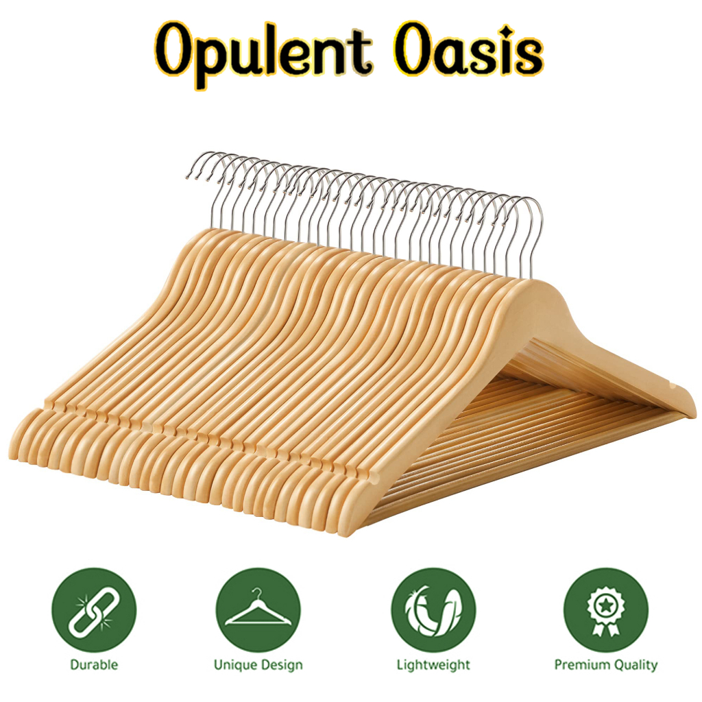 Opulent Oasis>>20PCS Cabides de madeira, com entalhes nos ombros, barra antiderrapante para calças, gancho giratório 360°