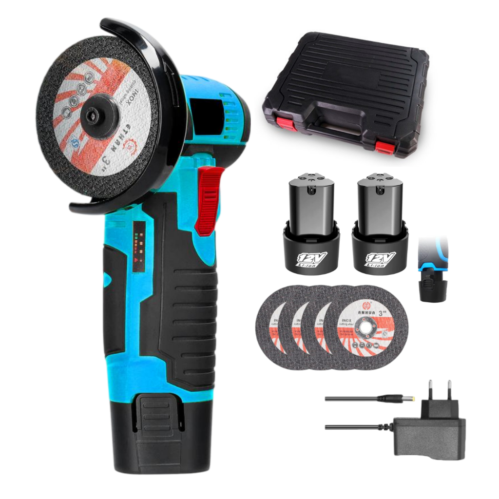 Lixadeira Esmerilhadeira Sem Fio Bivolt C/ 2 Bateria Recarregável 12V e 3 Discos de Corte C/ Maleta