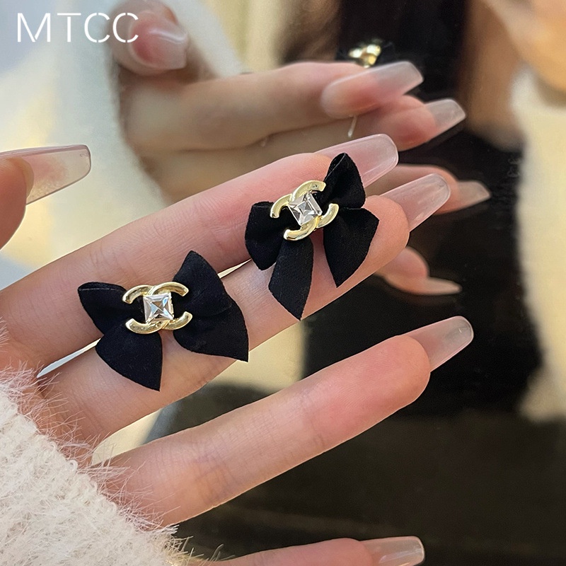 2023 Novo S925 Brincos Com Nó De Agulha De Prata Personalidade Da Moda Feminina Preto
