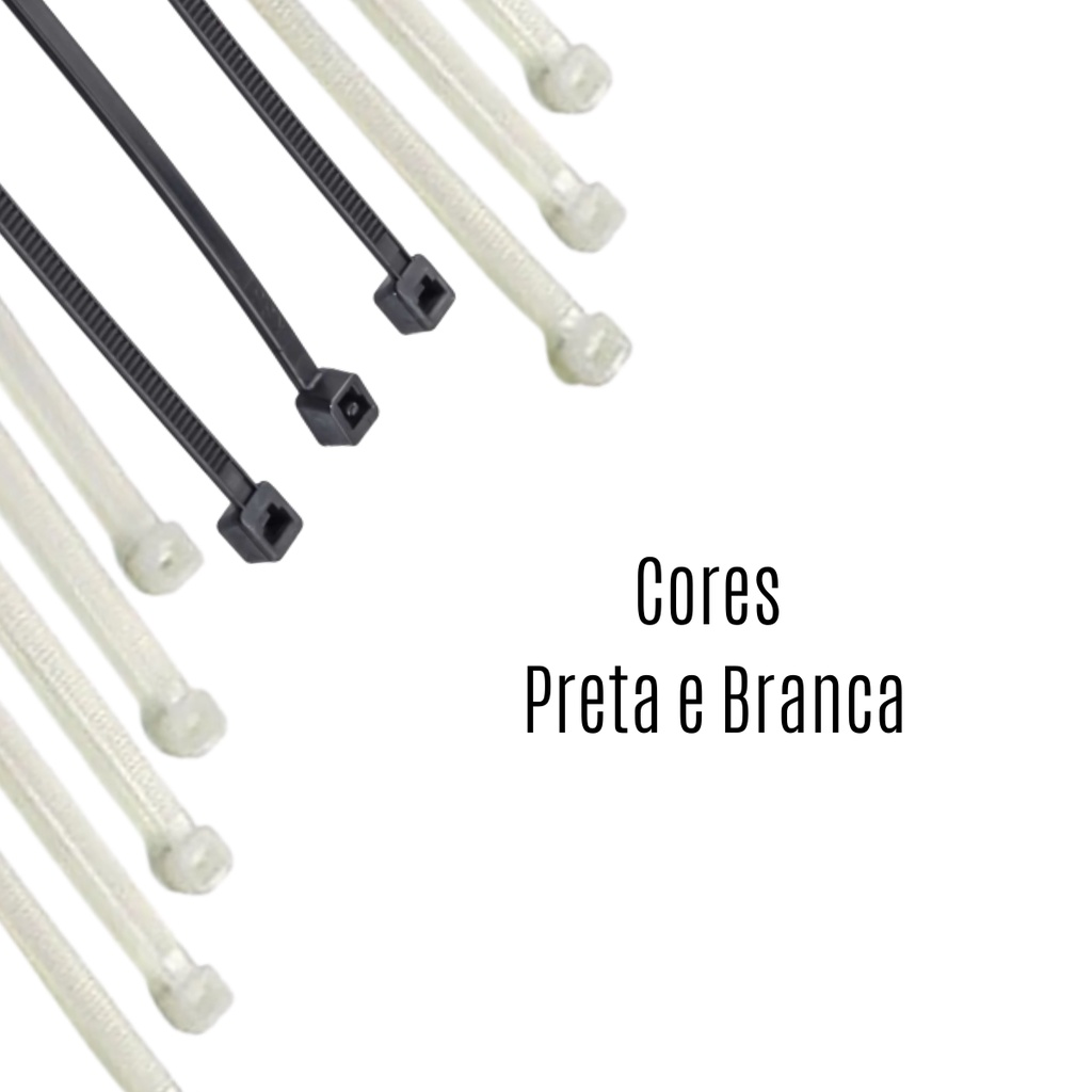 Kit 100 Cintas Plásticas Abraçadeira Nylon Enforca Gato Preta e Branca