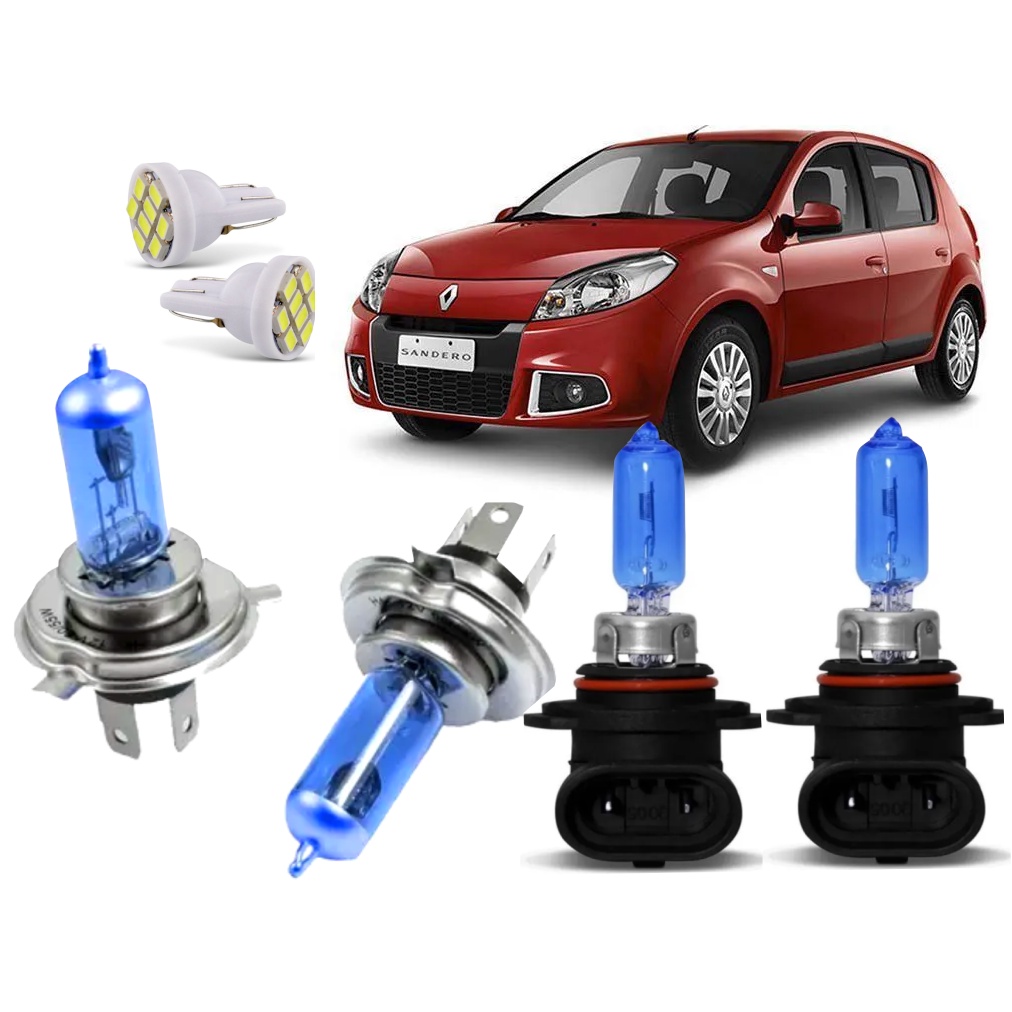 Kit Lâmpadas Renault Sandero 2008 2009 2010 2011 2012 2013 Super Branca Farol H4 H11 T10