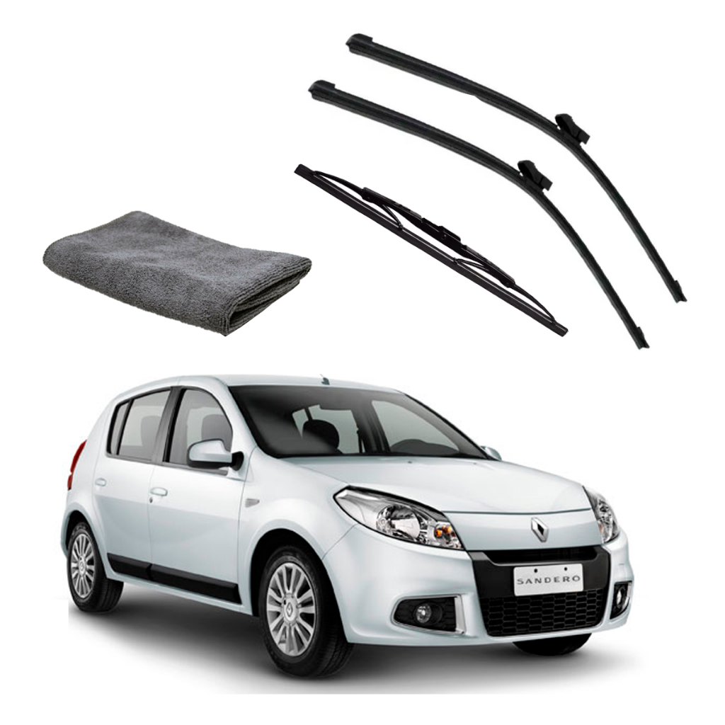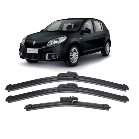Kit 3 Palhetas Limpador De Parabrisa Dianteiro + traseiro Renault Sandero 2007 2008 2009 2010 2011 2012 2013 2014