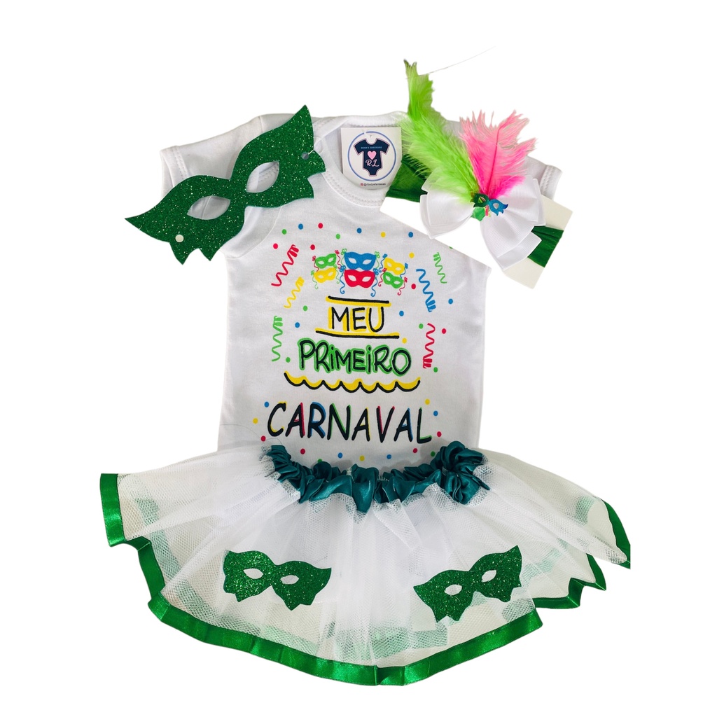 Kit Body Bebê Meu Primeiro Carnaval Temático Mêsversário Menina Laço + Tule Promoção