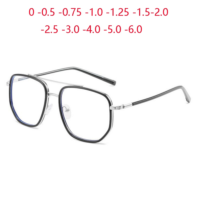 Óculos Unissex Com Armação De Prata Preto Em Poligon Miopia 0-0.5-0,75 A-6.0