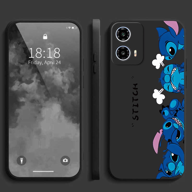 Motorola MOTO G34 5G G14 G54 G84 G53 G52 G82 Monstros De Desenho Animado Caixa Móvel Big Eyes Stitch Silicone Líquido De Ponto Grande Capa Completa Para Câmera