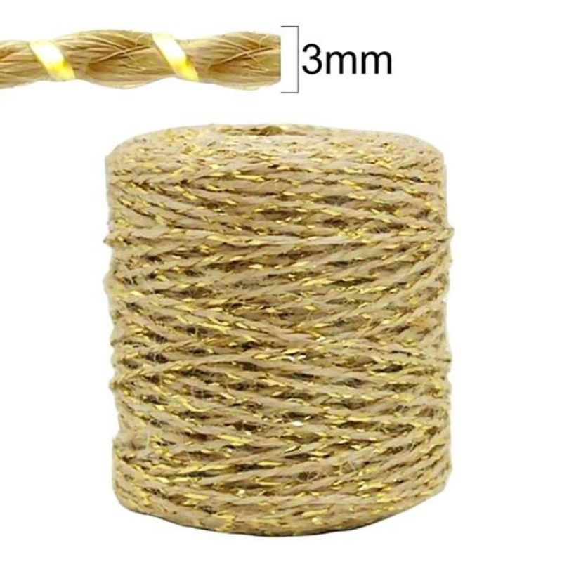 Fio de Juta Lurex Dourado 100 Metros Corda Cordão Tag Convite Artesanato Lembrancinha