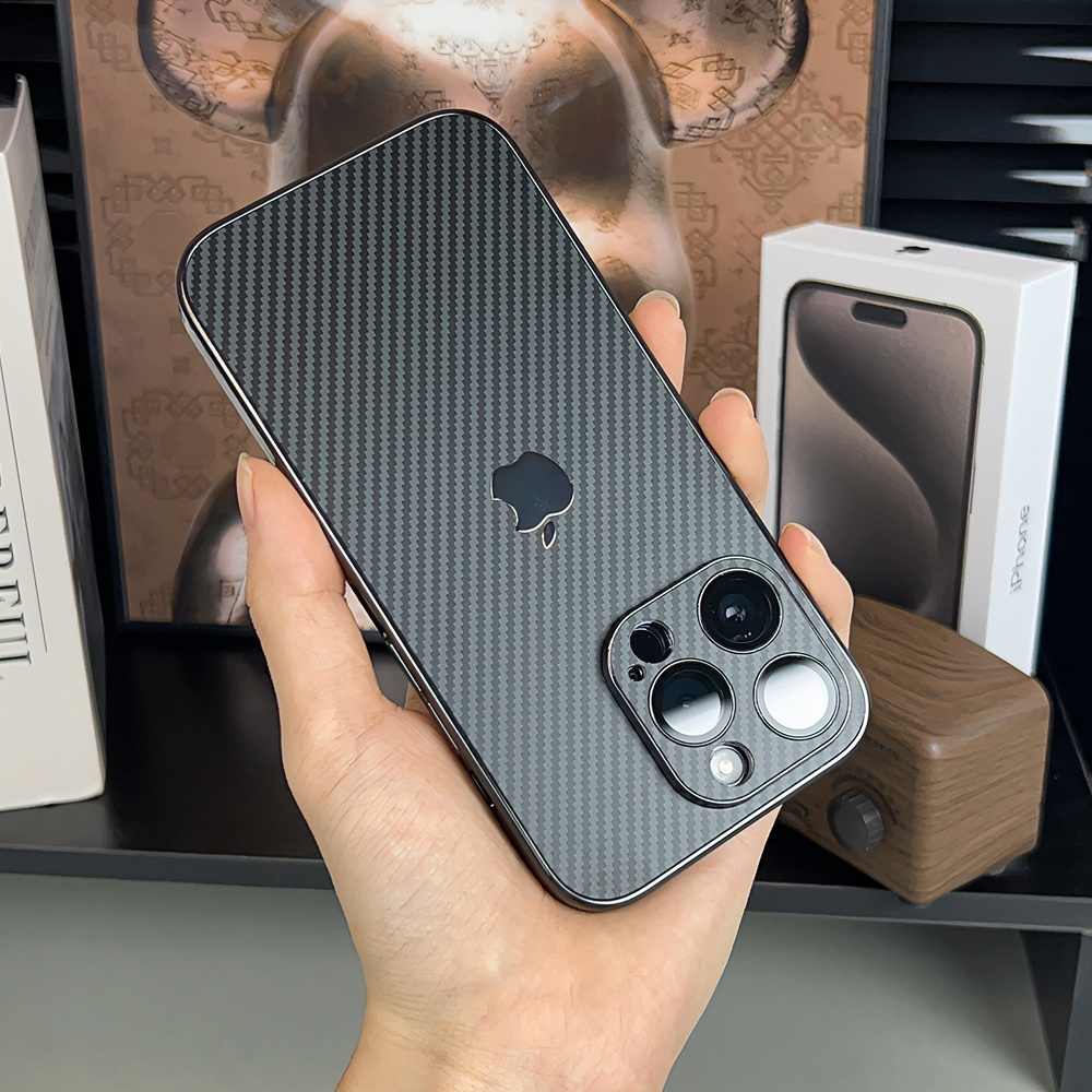 A Caixa Do Telefone Celular Shanshuifeng É Adequada Para IPhone 15 13 Pro 14 11 12 15 Max Hard Shell Da Lente De Liga De Fibra De Carbono Texturizada .