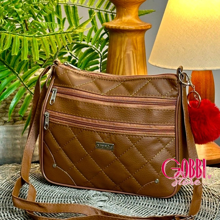 Bolsa Feminina Básica Pequena Transversal 3 Divisórias Alça Regulável+Chaveiro Pompom-ENVIO IMEDIATO