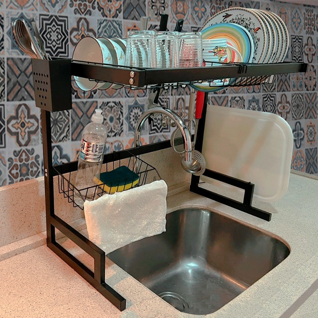 Escorredor De Louças Organizador Aço Inoxidável Com Porta Copos e Porta Talher Para Pia