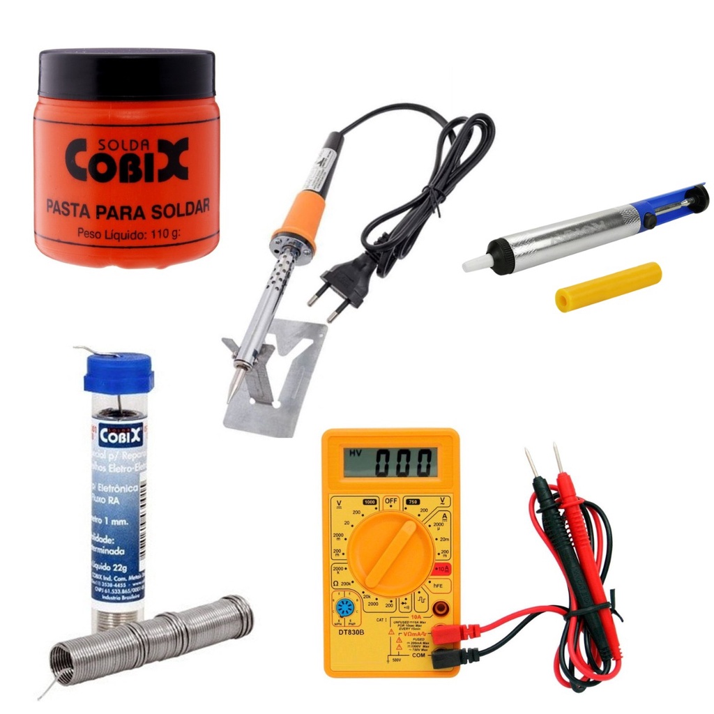 Kit Ferro De Solda Multímetro, Pasta, Solda E Sugador