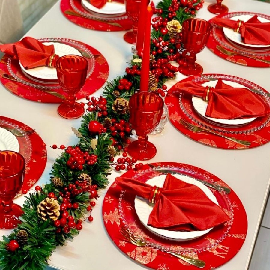 Kit Completo Natal 12 Lugares Sousplat + Guardanapos Decoração Mesa Até 06 Lugares Enfeite Mesa