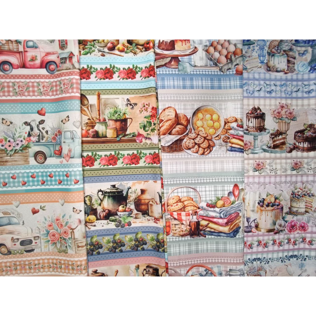 Kit 4 faixas barrados NATAL/SORTIDOS tricoline digital 100% algodão - largura 50cm x 75cm o corte