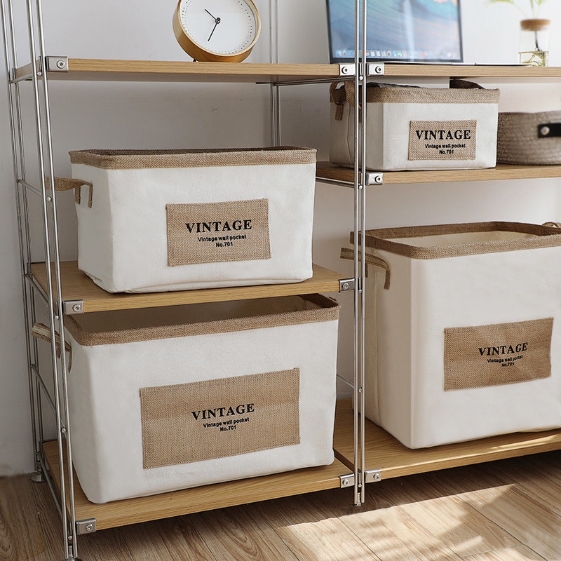 Cesta De Tecido Vintage Armazenamento De Armário Dobrável À Prova D'água Com Alça Organizador Doméstico