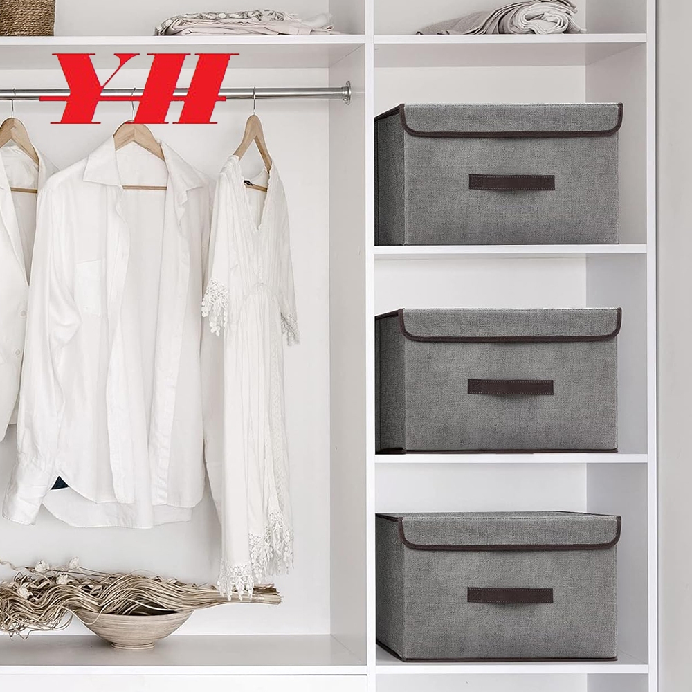YH- Caixas de armazenamento de tecido, caixa de armazenamento com tampa organizador de cesta dobrável caixas grandes