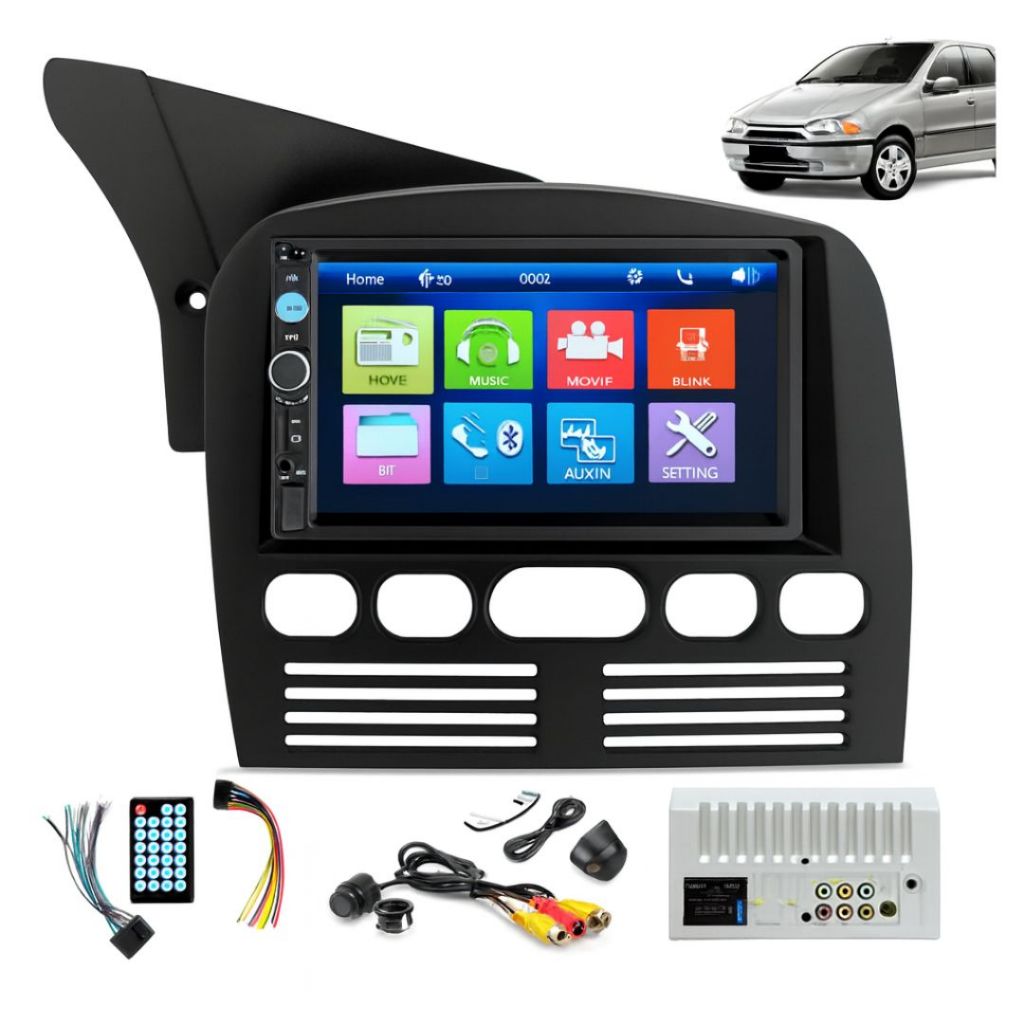 Kit Central Multimídia Palio Strada Siena Idea Weekend + Moldura 2 Din Bluetooth Espelhamento USB