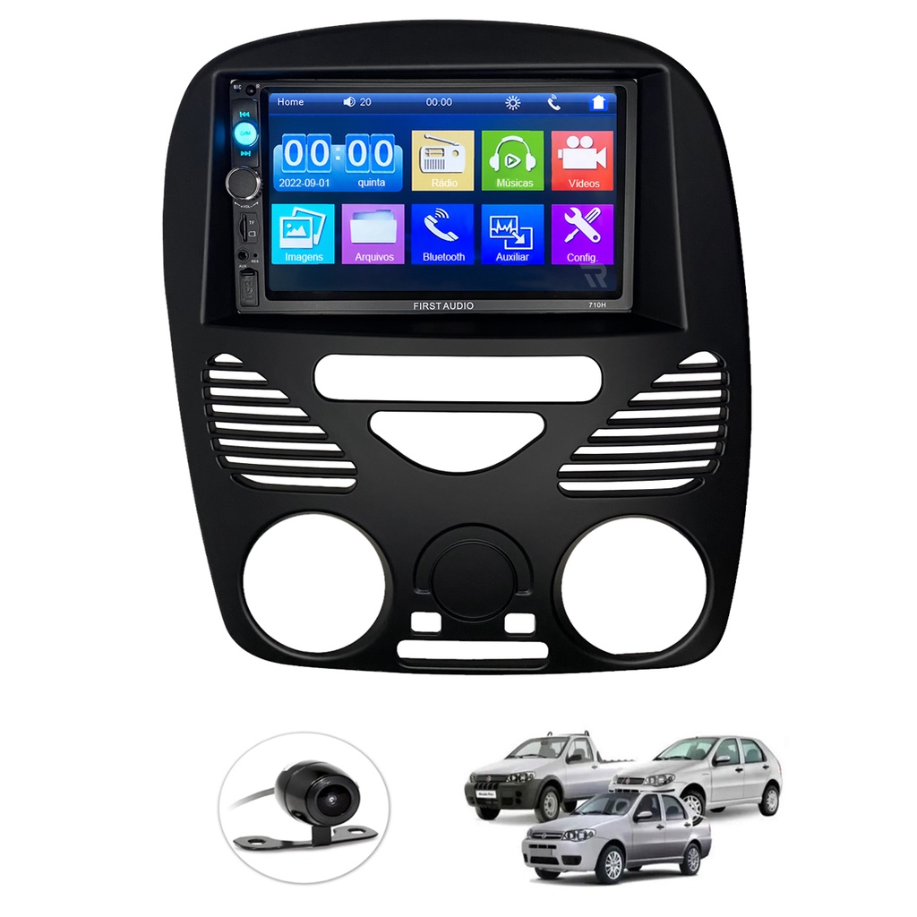 Kit Central Multimídia 2 Din Mp5 Fiat Idea Siena Palio Strada Weekend + Câmera + Moldura