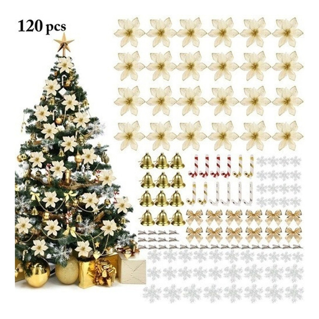 120Pcs Flores Natalinas Enfeites Artificial Arvore Natal Decorada