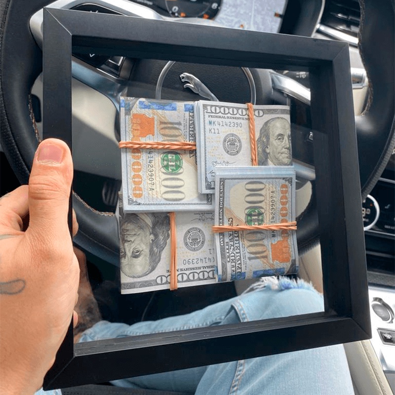 Quadro Milhao Dole Decorativo Dinheiro Notas Moldura Mini 3D Alto Relevo