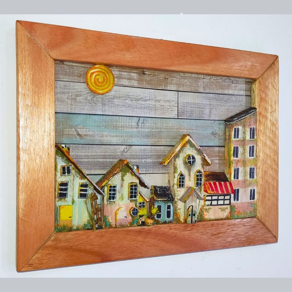 Quadro Decorativo Casinhas Rusticas Artesanal 25x19cm Alto Relevo Com Moldura Leia Descrição
