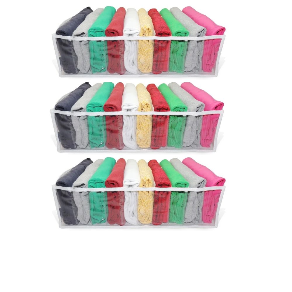 Kit 3 Colmeia Organizadora De Gaveta e Armários em Nylon Transparente Para Calcinhas Cuecas e Meias Com 7 Divisórias
