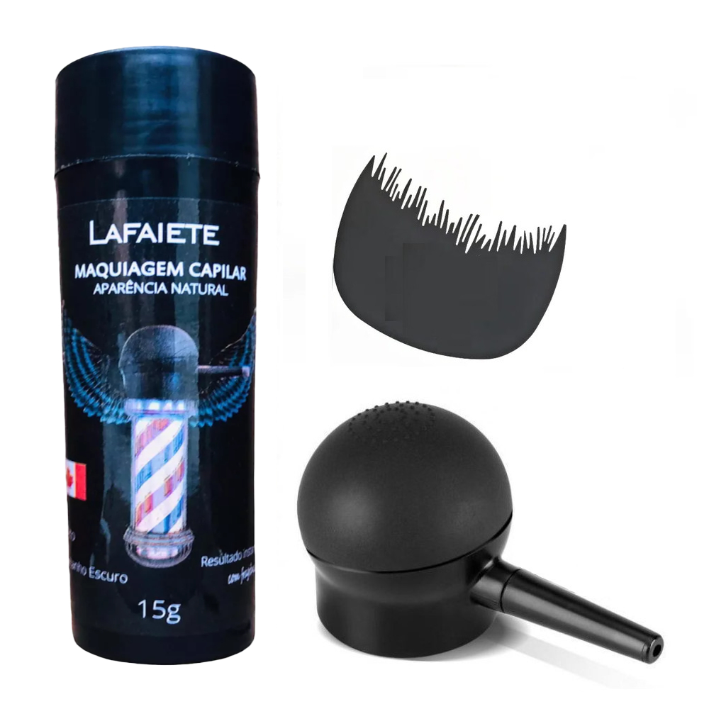 Fibra Capilar Lafaiete 15g - Maquiagem para Calvície, Falhas e Imperfeições - Com Acessórios