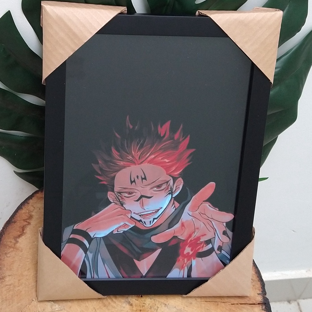 Quadro decorativo com moldura e vidro Jujutsu no Kaisen anime geek pôster