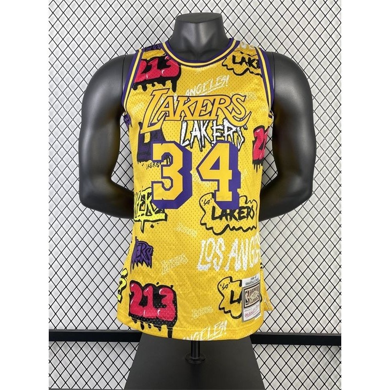 Camisa de pressão quente retrô Mn: SW Lakers 96/97 NBA camisa 34 O'Neal
