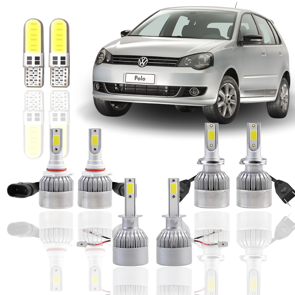 KIT (Faról: Baixo/ Alto/ Milha+ Farolete) Volkswagen Polo 2007 2008 2009 2010 2011 2012 2013 2014 Lâmpada Super Led Branca Ultra Led Xenon contém: H1- H7- HB4 - T10 Super led ultra led 9600k Forte c6 Neblina Alto Baixo Milha Xenênon Farois