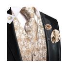 Colete De Seda Masculino Com Gravata, Lenço, Abotoaduras E Broche Para Terno De Casamento E Negócios