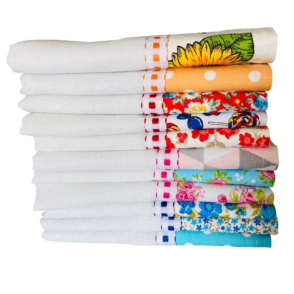 Pano De Prato Estampado Bainha Atacado Kit Com 10 Peças