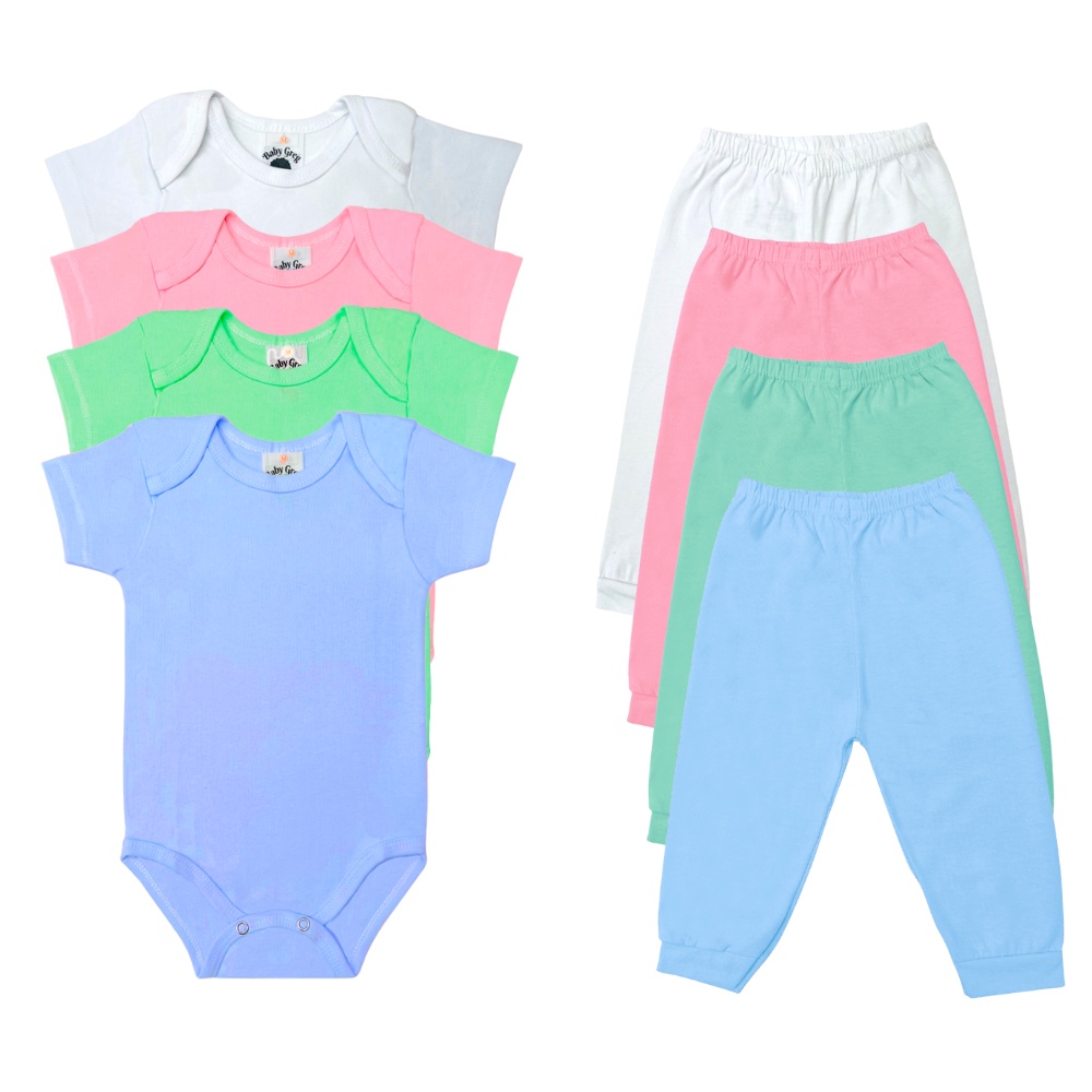 Roupa de Bebê Kit 8 peças (4 body M/C em malha e 4 mijão em malha) Menino, Menina ou Unissex