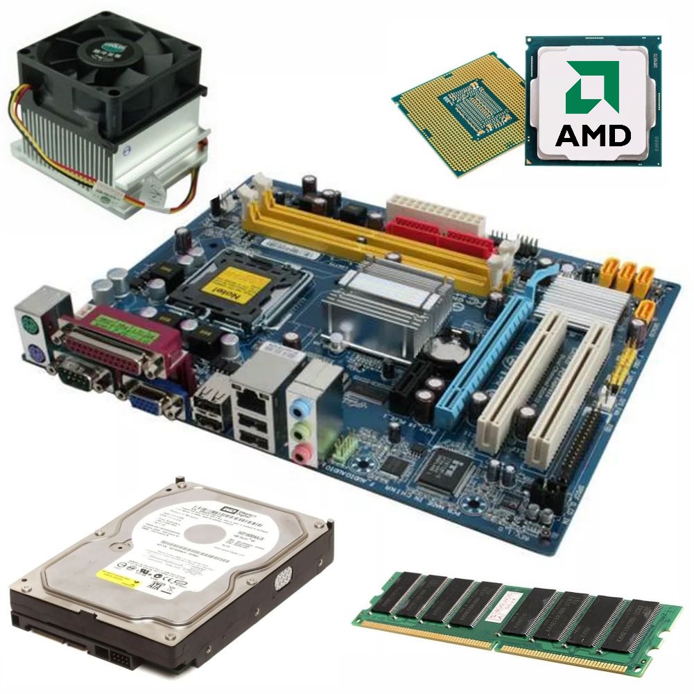 Kit Combo Conjunto DDR1 Placa Mãe Motherboard Processador AMD Memória HD Cooler Dissipador Completo