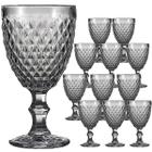 Jogo 12 Taças de Vidro Luxo Agata Cinza 340ml Vinho Água Drinks Grosso Resistente Ametista