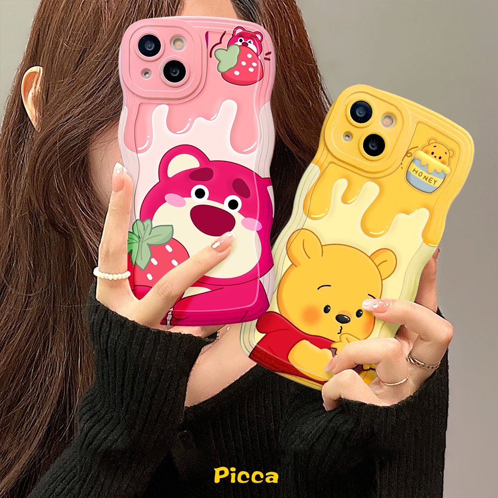 Bonito Desenho Animado Winnie the Pooh Urso De Morango Lotos Casal De Telefone Compatível Para iPhone 11 15 14 13 12 Pro Max 6 6s 14 8 7 Plus X XS XR SE 2020 Capa Traseira Macia Tpu