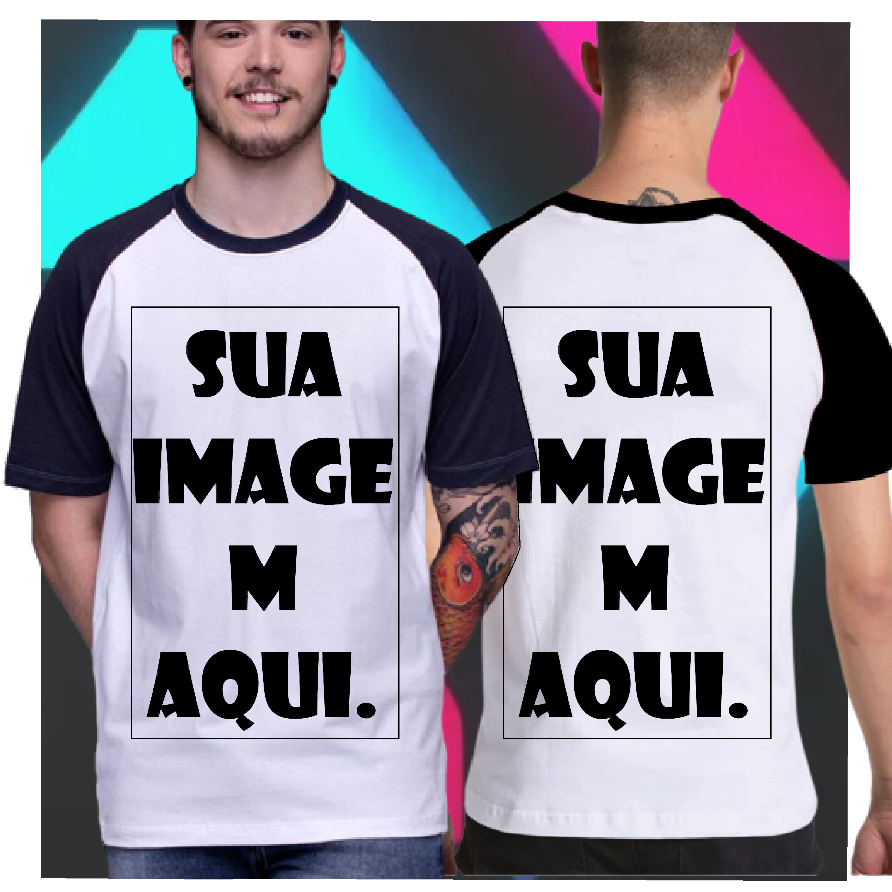 Camisa Masculina Personalizada Camiseta Feminina Básica "Sua Imagem aqui" Malha Fria Modelo Lisa / Raglan