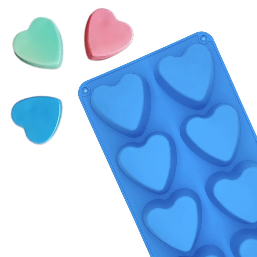 Molde de Silicone Coração Grande 8 Cavidades Sabonetes 90g Forma Silicone Vela Corações