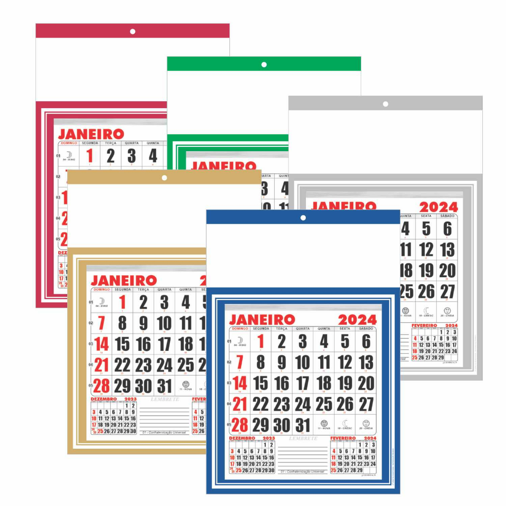 10 Calendários de Parede 27x37 Modelo 40 Comercial 2024 C/Bloco 12 Meses com grampo - ver descrição do produto