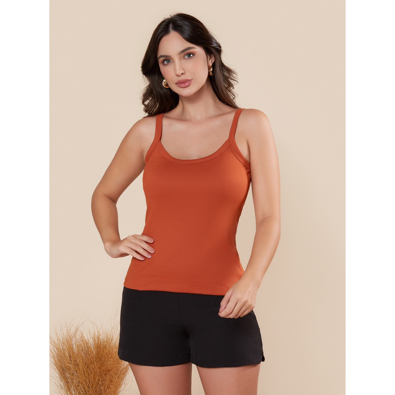 Regata feminina alça fina tecido malha algodão canelada confortável cores básicas